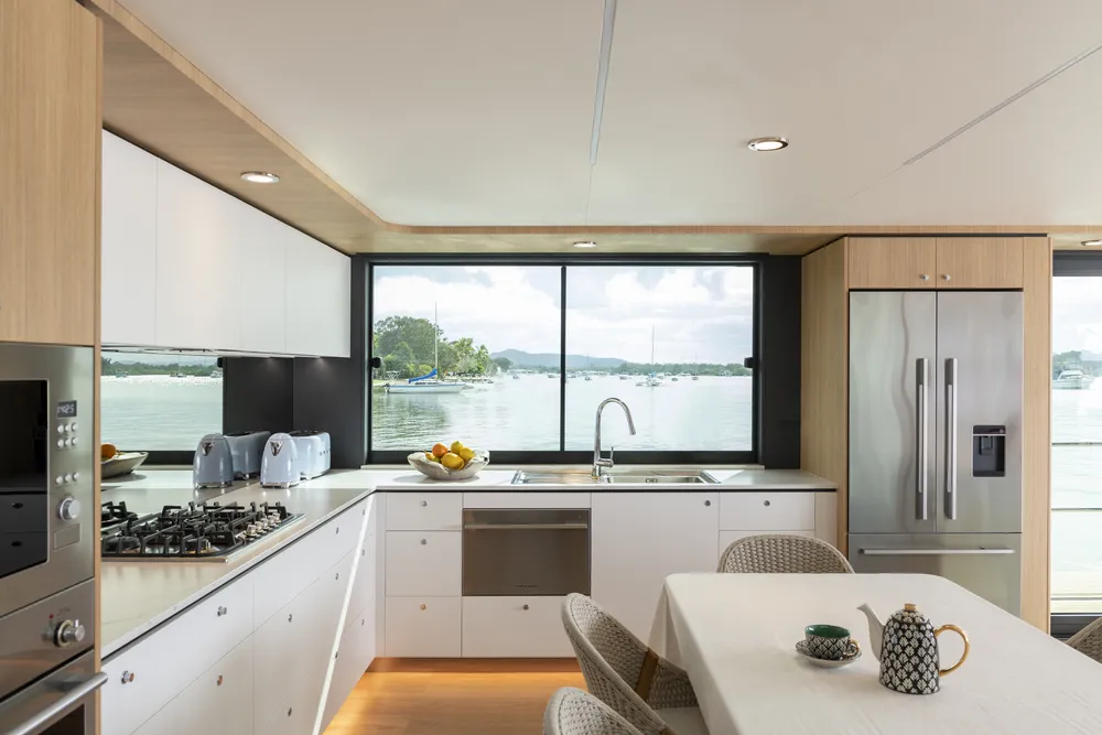 Built by our expert craftsmen in Bundaberg, she reflects a vision of “a floating two-bedroom luxury apartment,” brought to life with the craftsmanship of a world-class design and build team.