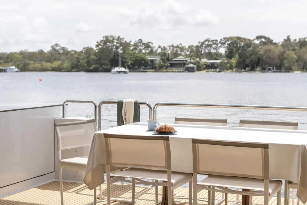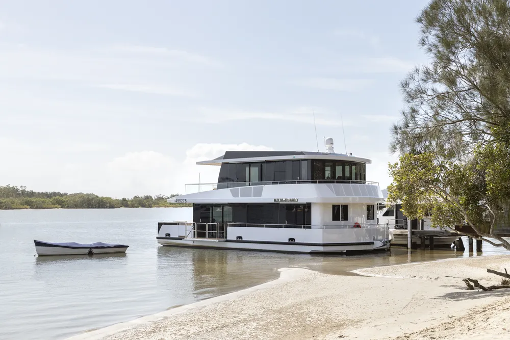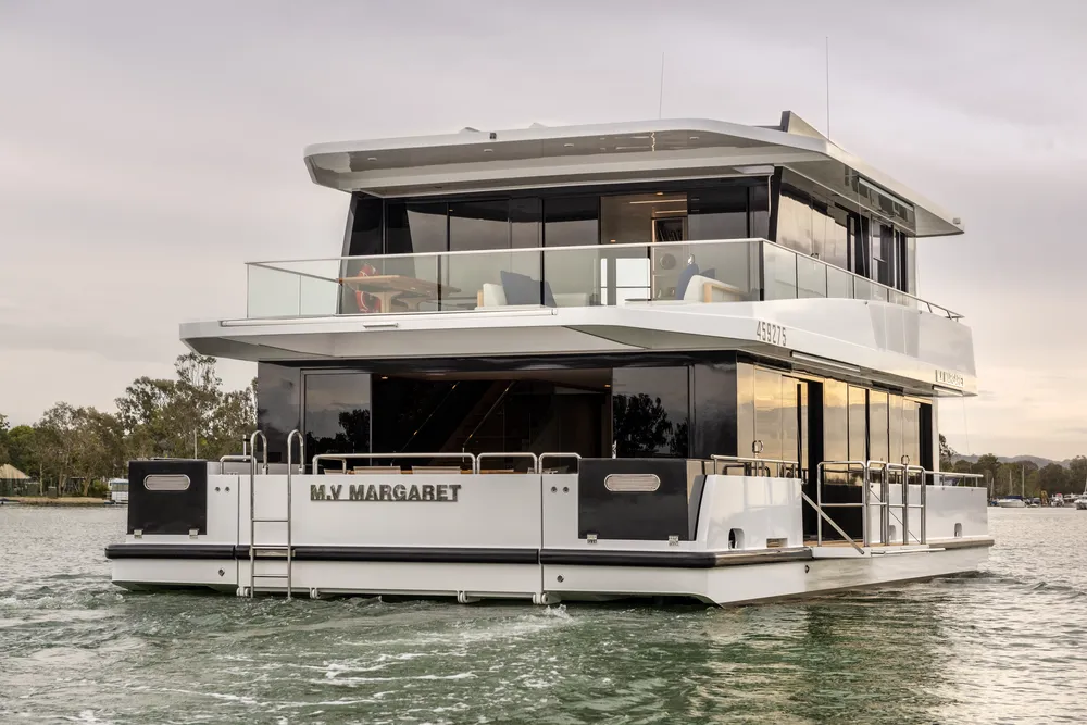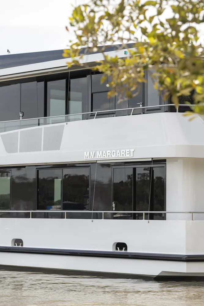 Launched in 2022, M.V. Margaret is a bespoke 14.6-metre houseboat created to blend contemporary living with the natural beauty of the Noosa River.
